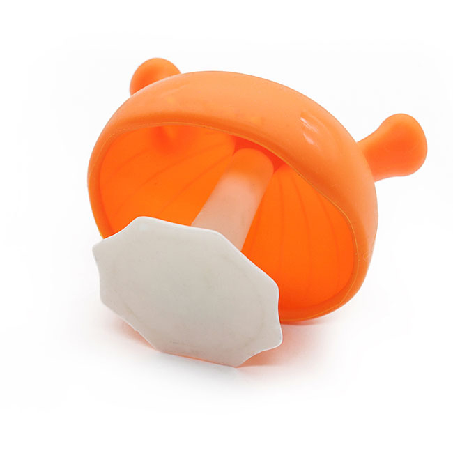 此款食品級硅膠牙膠設計別具一格,符合仿母乳安撫設計,增加寶寶的安全感,幫助寶寶輕松度過口欲期。翻轉蘑菇頭變身趣味零食杯。吸附在餐椅上,也是一款不錯的吃飯玩具。
