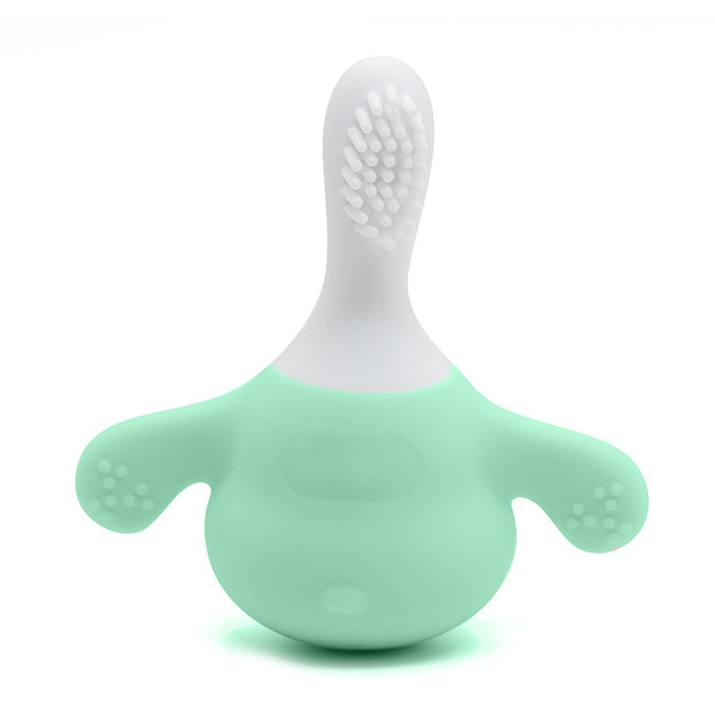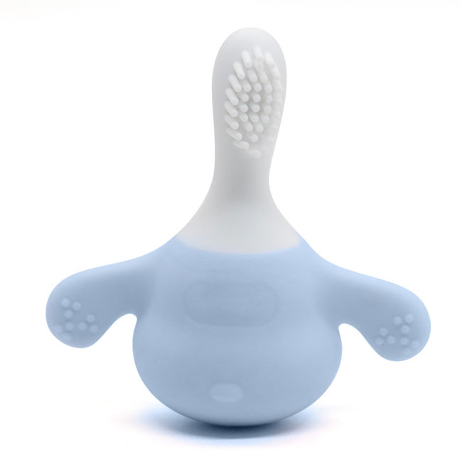 牙膠硅膠牙刷全方位用柔軟材質(zhì)的硅膠生產(chǎn),呵護著嬰兒寶寶的牙床,防止對寶寶的口腔傷害。