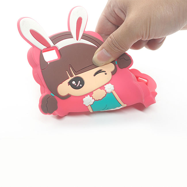 粉色的卡通手機(jī)殼外表加上可愛人偶表情,讓人愛不釋手。