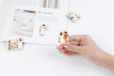 除了磁性冰箱貼之外,還有一些磁性貼是從冰箱貼演變而成的。溫度計冰箱貼:選用的是下方軟膠的磁鐵,上方則是銅版紙的四色印刷背光膜及其溫度計,這種冰箱貼不但可以裝飾冰箱,還可以隨時隨地了解到室內的溫度。磁相框:選擇軟膠磁鐵,結合上鏡框銅版膜,從中間切出一定尺寸的相框。這種相框可以直接吸附在有鐵的地方,不需要在墻上打孔之類的,方便拆卸和移動。
